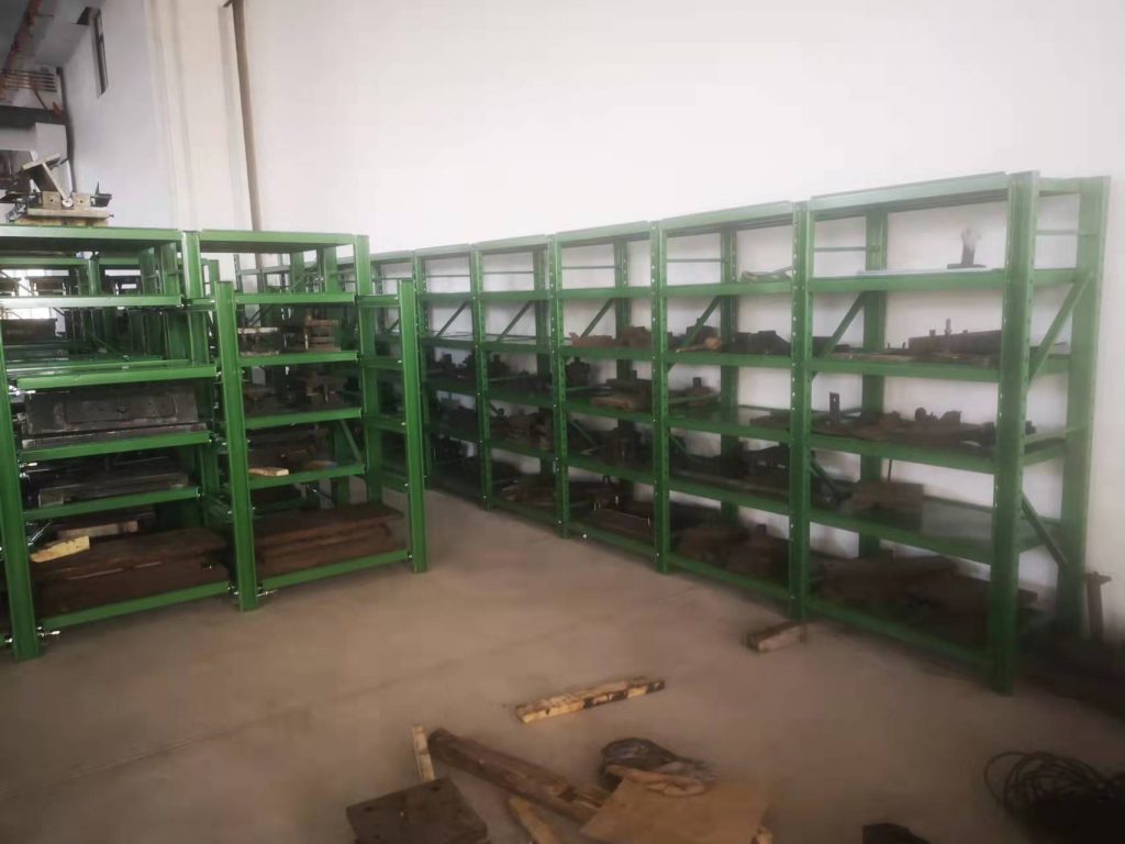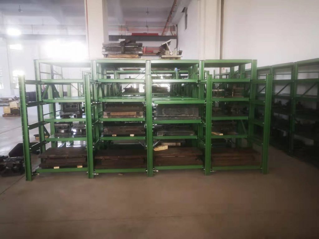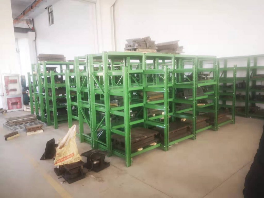 500-1000KG的模具存放在,博儲(chǔ)全抽模具架上,配合行車(chē)存??;